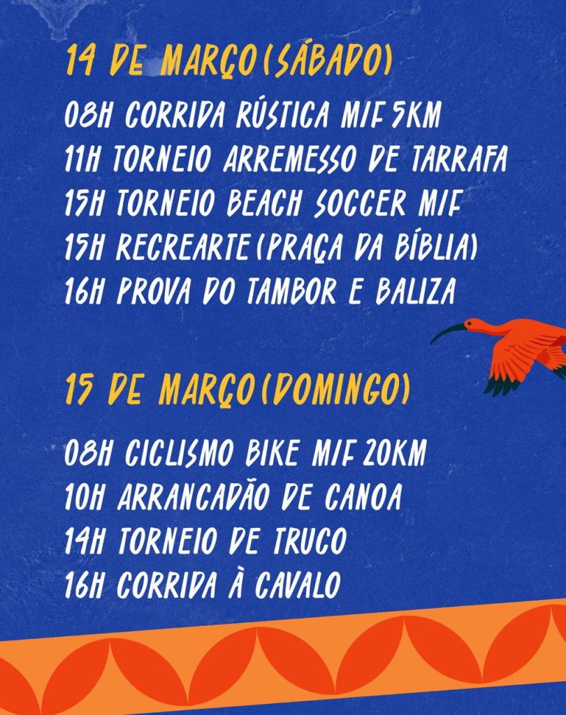 A programação foi organizada para valorizar a cultura local, incentivar a prática esportiva e proporcionar momentos de lazer e integração para moradores e visitantes.